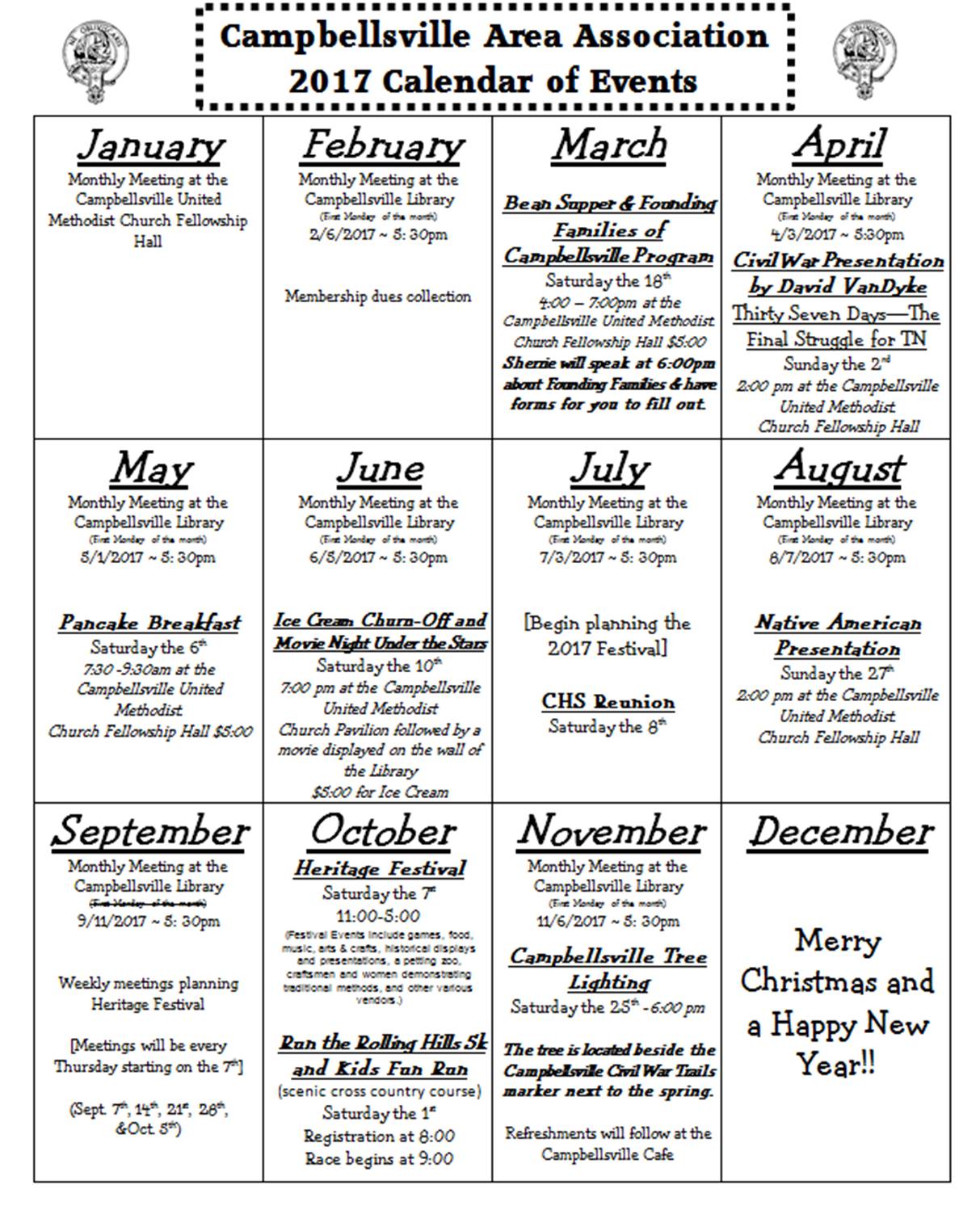 CAMPBELLSVILLE CALENDAR OF EVENTS
