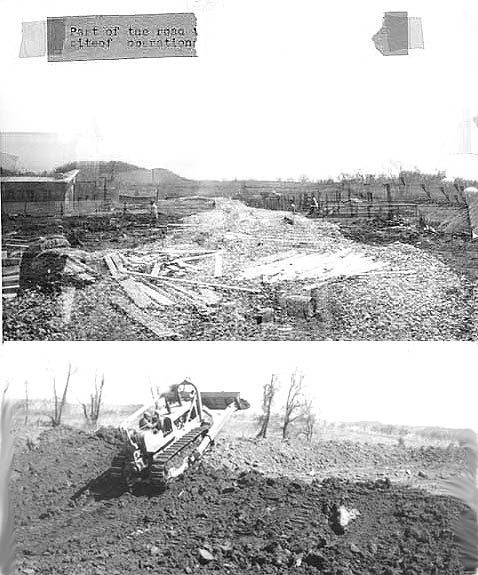 Building a road and clearing the site at the Campbellsville oil well in 1947