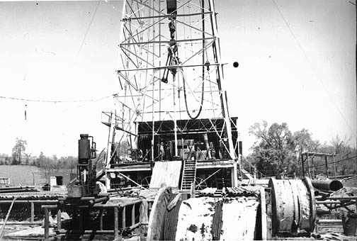 Part of Campbellsville's oil well equipment in 1947 photo.