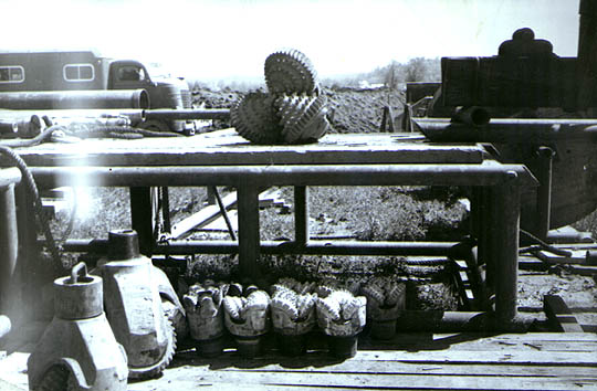 Drilling bits and other equipment used at the Campbellsville oil well in 1947.