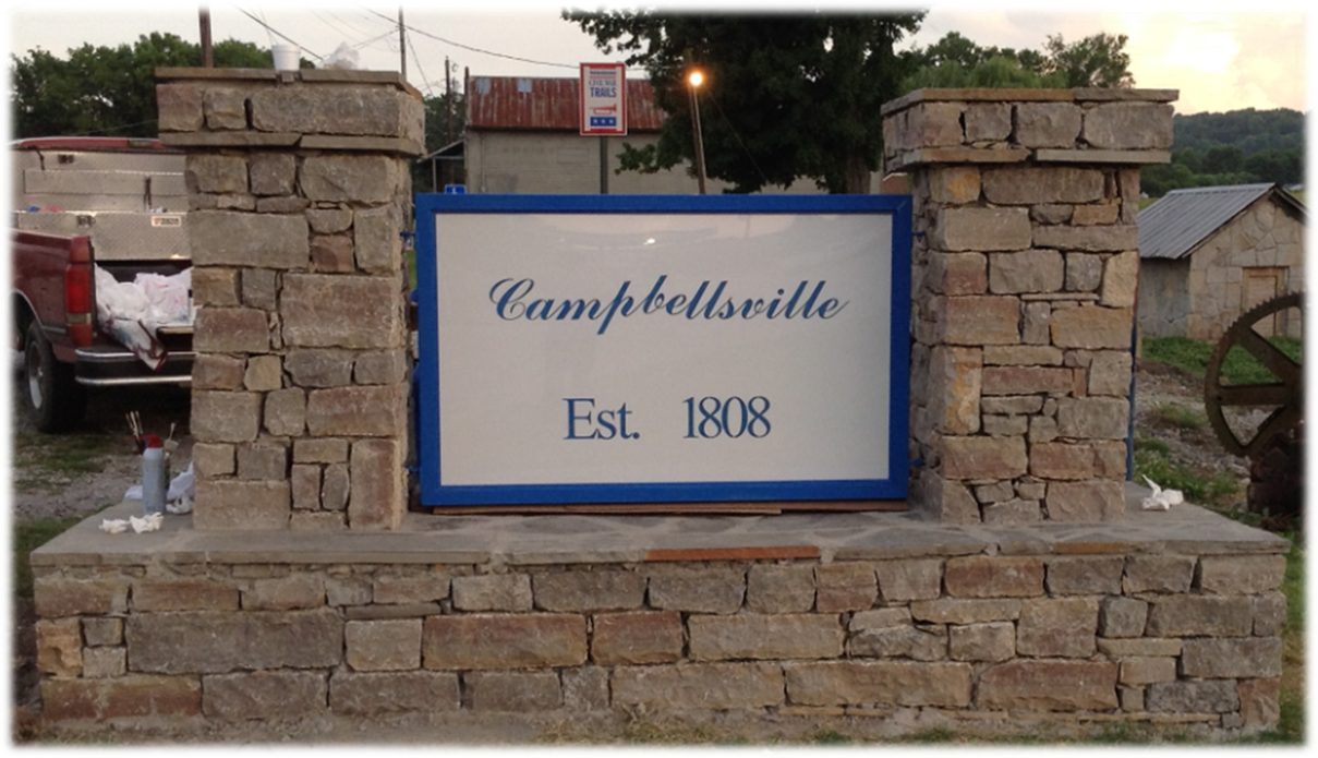 This Campbellsville sign was donated by Jane Burns Campbell Hosay and John Newton Morris in 2014.